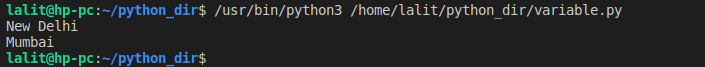 place="New Delhi" print(place) #Assigning a new value to the variable place place="Mumbai" print(place)