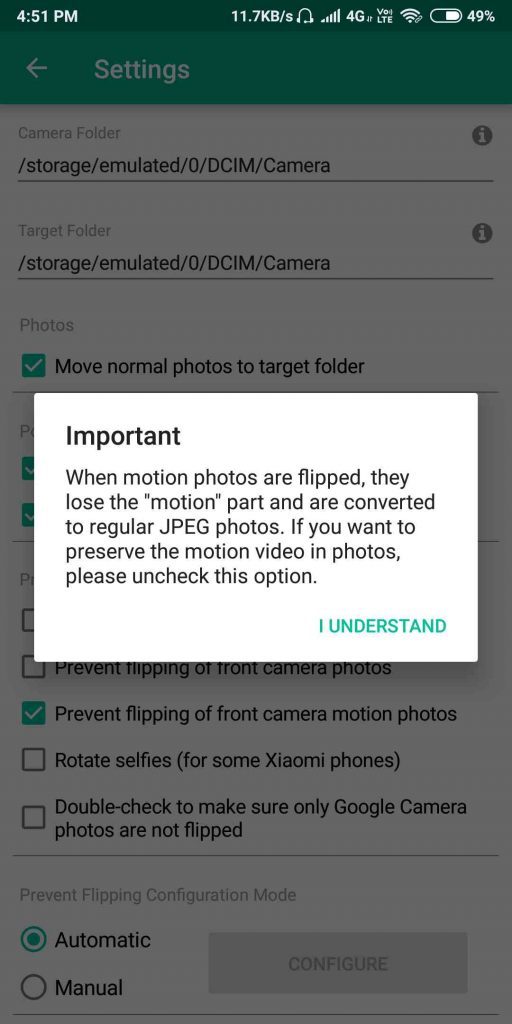 - For moving normal photos to the targetted folder you have to enable the option in settings.