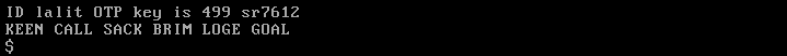 [alert color=”yellow”] Note: Always generate your one time password from a secure location[/alert]Now open a new terminal and run –