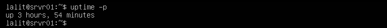 To display the system uptime using uptime command open your terminal by pressing ctrl+alt+t and then run the following command –