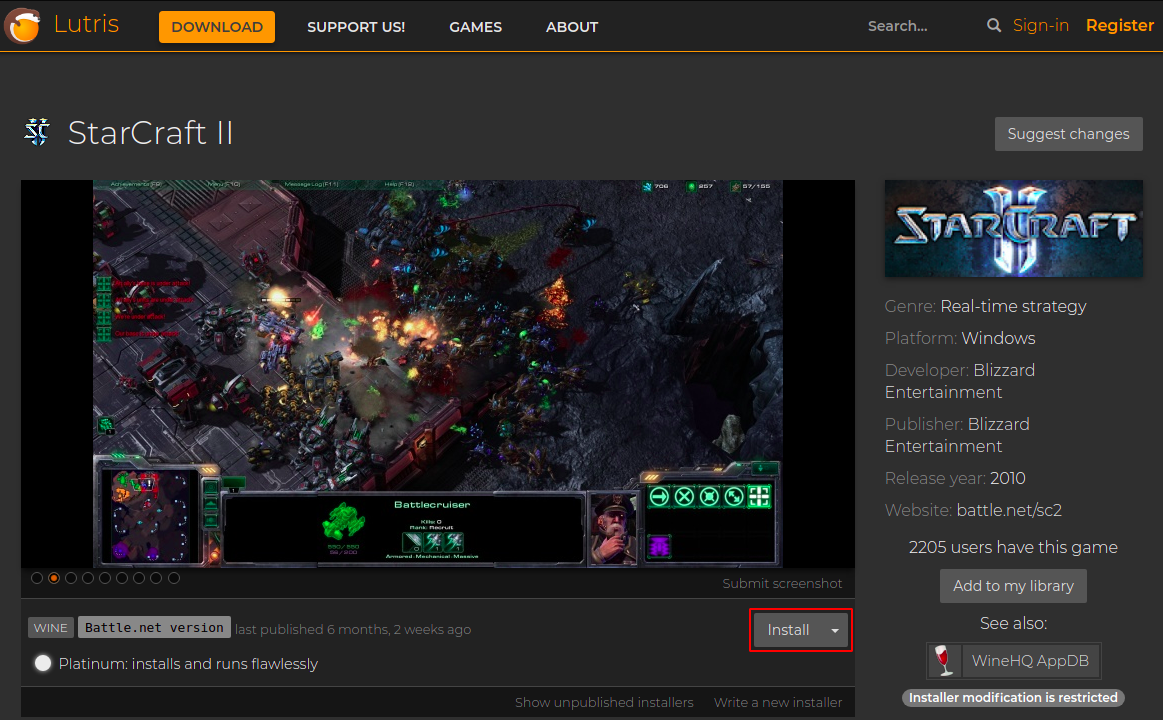 After installing Lutris on your system go to the official website of Lutris and in the games section find a specific game that you want to install.