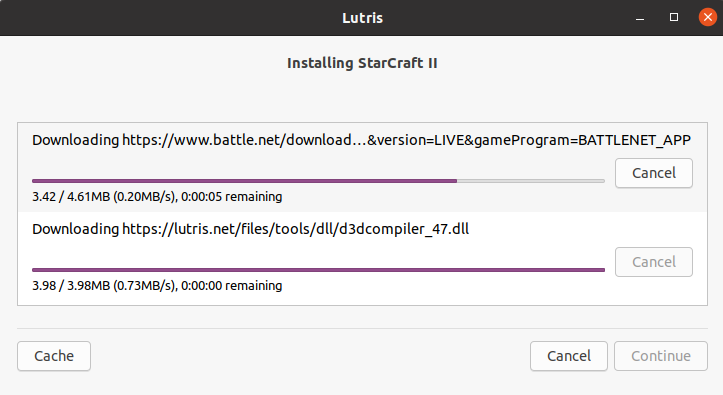 You can expect a few installation prompts as Lutris may download the required dependencies and game content. Click on Continue to download them.