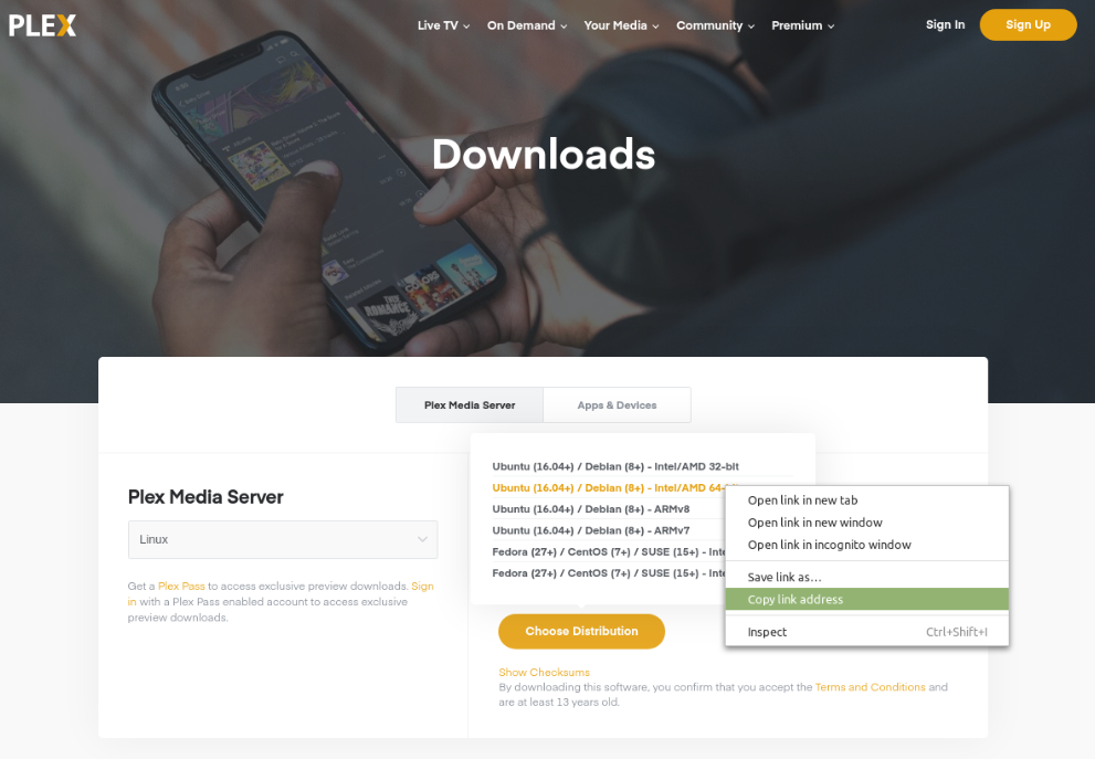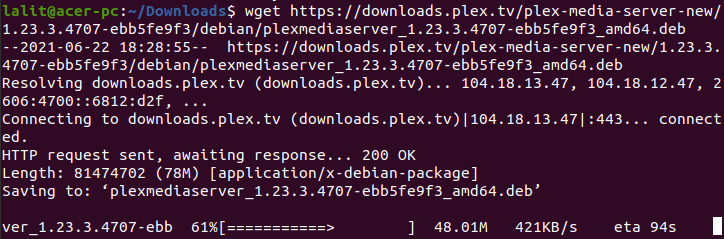 First, go to the download page of the Plex media server on its official website and download the deb package of the Plex media server. OR you can copy the download link and use the wget command in your terminal.
