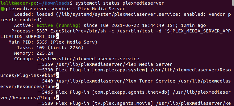 The Plex media server will enable and start running automatically. You can check the status by using the given command.
