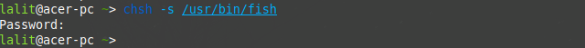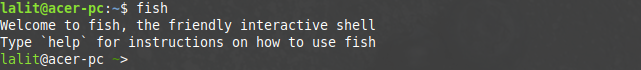 Now once the installation of the fish shell gets completed. Use the fish command in your terminal-