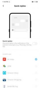 - Quick Replies – This MIUI feature is helpful a lot for chatting purposes. This feature is especially avilable for chatting applications such as – Whatsapp, WeChat etc. Now, you don’t need to miss the chattings even ff you are busy on your phone then you can use this feature to do both the tasks simultaneously.