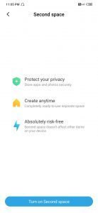 - Second Space – You can create the second space in your device and you can swith to them accordingly. This MIUI 11 feature is introduced to protect your privacy and it is absolutely risk-free to use.