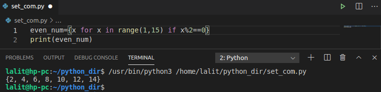 This is how you can use set comprehension to write shorter codes. Now If you have any query then write us in the comments below.