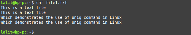 Suppose we have a file called file1.txt which contains some duplicate lines of text. You can see the content of this file in the given image –