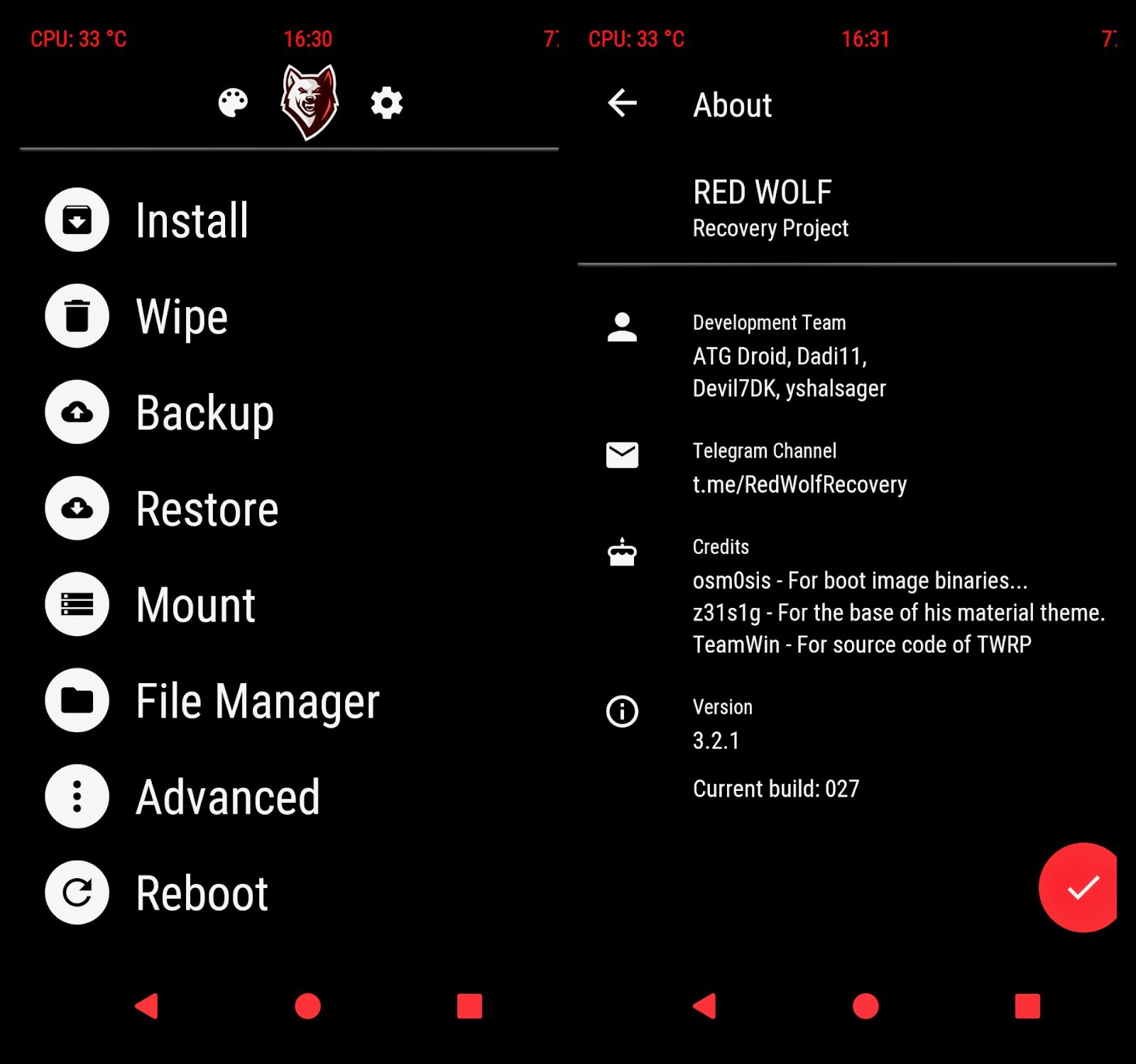 - Profit!!! You should now have a fully featured Red Wolf TWRP on redmi 5 Plus.